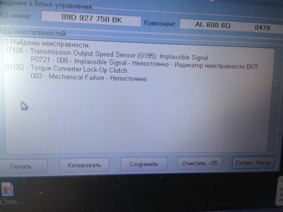 ошибка 17105 transmission output speed sensor (g195) implausible
