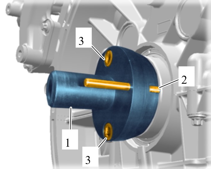2.1. Установить центрирующее приспособление -1- на фланце коленчатого вала.
