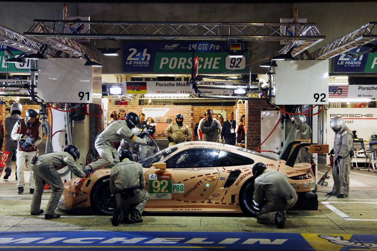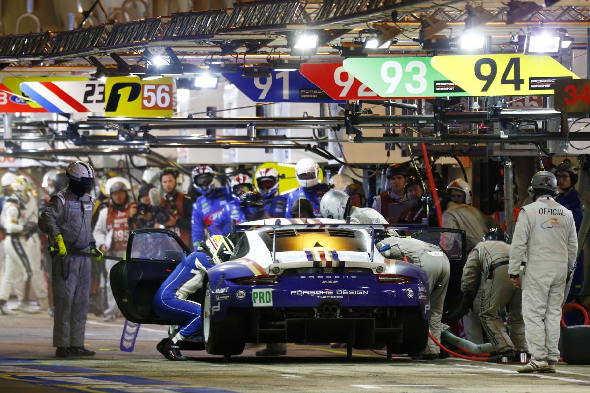 «Девятьсот одиннадцатый» со стартовым номером 93 сильно отстал ночью из-за технической проблемы. В связи с вынужденными ремонтными работами Патрик Пиле (Франция), Эрл Бамбер (Новая Зеландия) и Ник Тэнди (Великобритания) потеряли 25 минут и заняли в конечном итоге одиннадцатое место. Для Ромена Дюма (Франция), Тимо Бернхарда (Брухмюльбах-Мизау, Германия) и Свена Мюллера (Бинген-ам-Райн, Германия) гонка окончилась уже спустя семь часов. Их Porsche 911 RSR (номер 94) с поврежденной подвеской ночью сошел с дистанции.