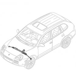 5. Выкрутить крепежные винты -стрелки- теплозащитного экрана (рулевой механизм/рулевой вал). Если речь идет об автомобиле Cayenne с системой Servotronic, отсоединить разъем.