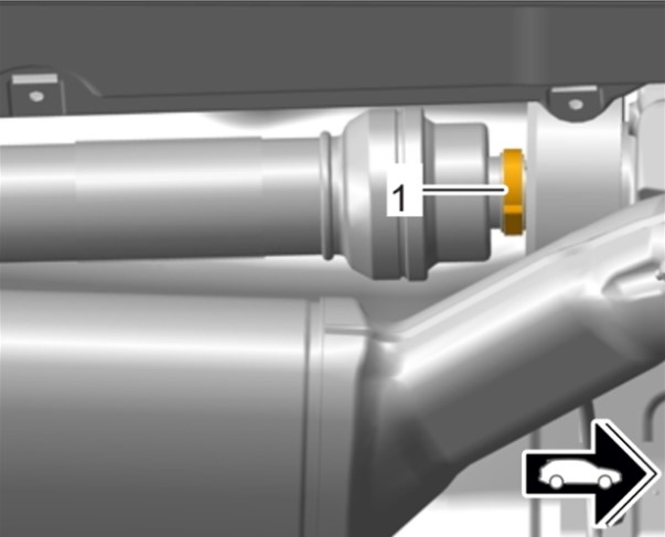 2 Отсоединить зажим с проушиной -1- от карданного вала со стороны коробки передач.