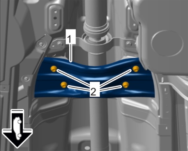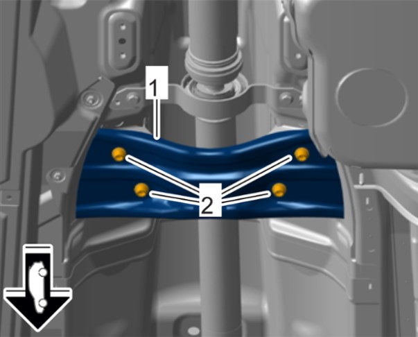 4 Снять теплозащитный экран и траверсу заднего тоннеля -1-.