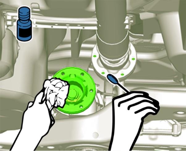 Для очистки сквозных и резьбовых отверстий по возможности использовать смоченные очистителем тормозов ватные палочки или скрученные в трубочку кусочки бумажной салфетки. Не продувать заново сквозные и резьбовые отверстия сжатым воздухом.