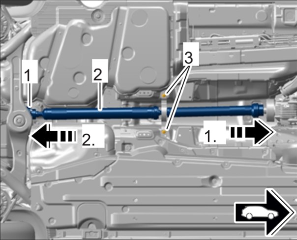 6.4 Снять карданный вал -2- в направлении -направление стрелки 2-.