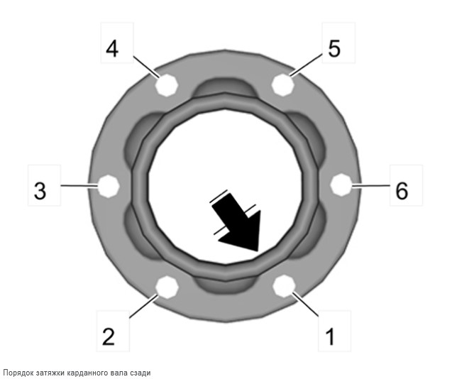5 Закрепить карданный вал сзади на главной передаче задней оси.