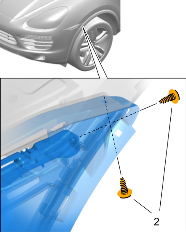 4 Затянуть винты крепления переднего подкрылка к переднему спойлеру. Момент затяжки 2 Nm
