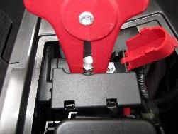 Закройте защитную крышку на положительном полюсе для запуска от внешнего источника электропитания и вновь установите пластиковую облицовку.