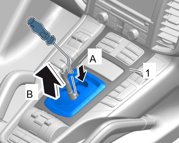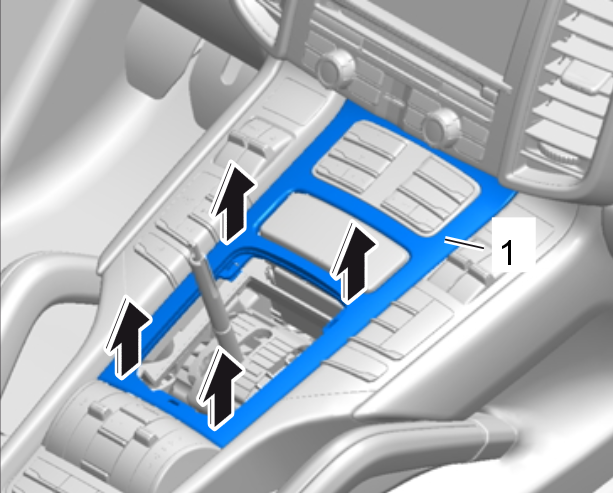 4. Установить инструмент монтажный инструмент на углах накладки -1- и разблокировать накладку -стрелки- .