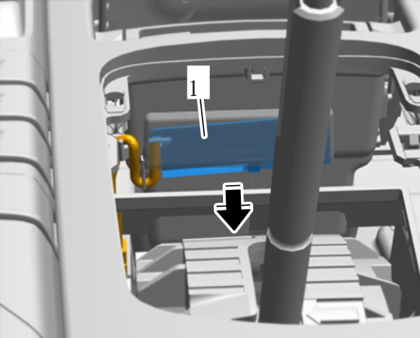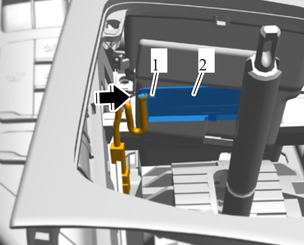 2. Отжать линзу -1- освещения пепельницы назад и извлечь вниз -стрелка- .