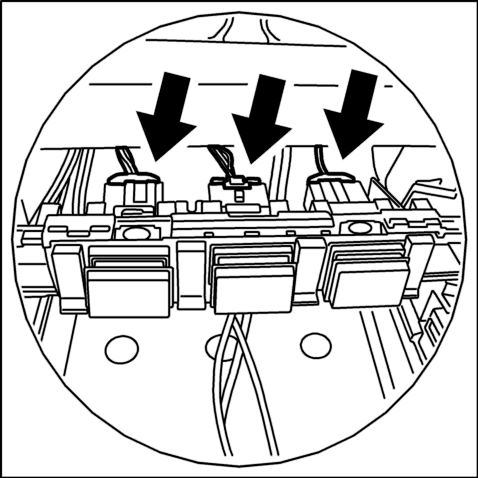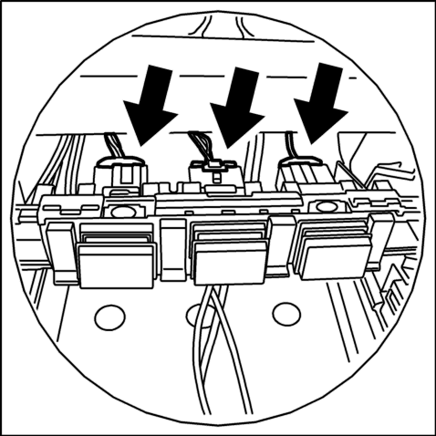 11. Потянуть разъемы приборов -1- назад -стрелка A- , пока разъемы -стрелки- не станут доступны.