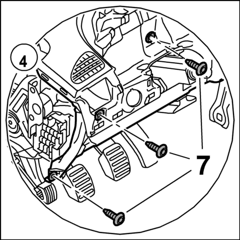 17. Отсоединить переднюю панель со стороны водителя и в центральной части. Для этого выкрутить крепежные болты -7- и -7- .