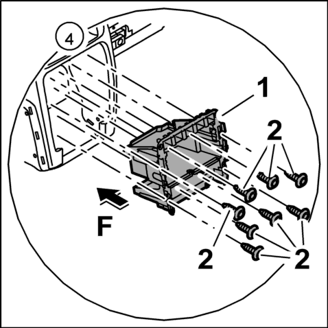 8. Установить кронштейн приборов -1- , -стрелка F- .