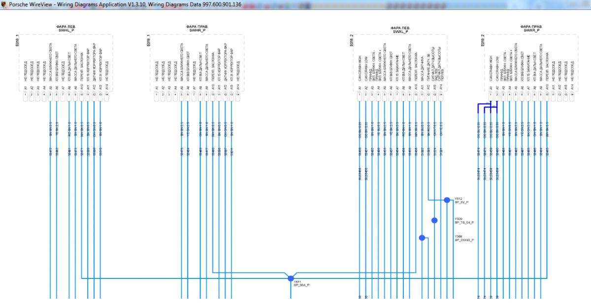 На самих фарах я так понимаю находятся по одному конектору ФАРА ЛЕВ.SWXL_P (E018 .2) и ФАРА ПРАВ.SWXR_P (E019 .2) от подходящему к фаре жгуту проводов.