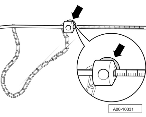 Задвинуть прибор для проверки индикатора уровня масла до упора (установочное кольцо) в трубку для маслоизмерительного щупа, затем снова вынуть его и считать уровень масла.