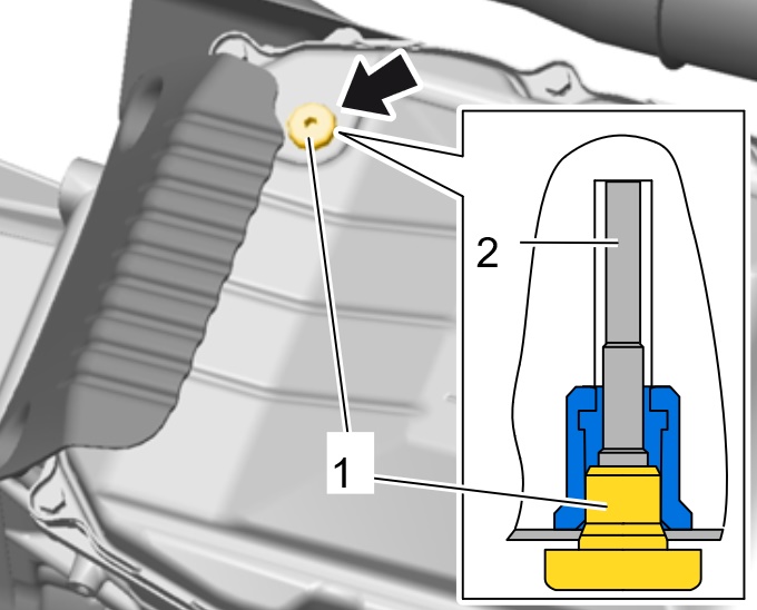 7. Если это не так, то залить ATF до его постоянного вытекания из подъемной трубки -2- .