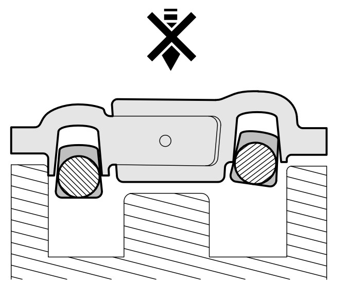 10. Фиксирующий инструмент установлен на ГБЦ неровно. Необходимо соблюдать одинаковое расстояние с обеих сторон. Внимание: в данном случае неправильную установку можно не заметить.