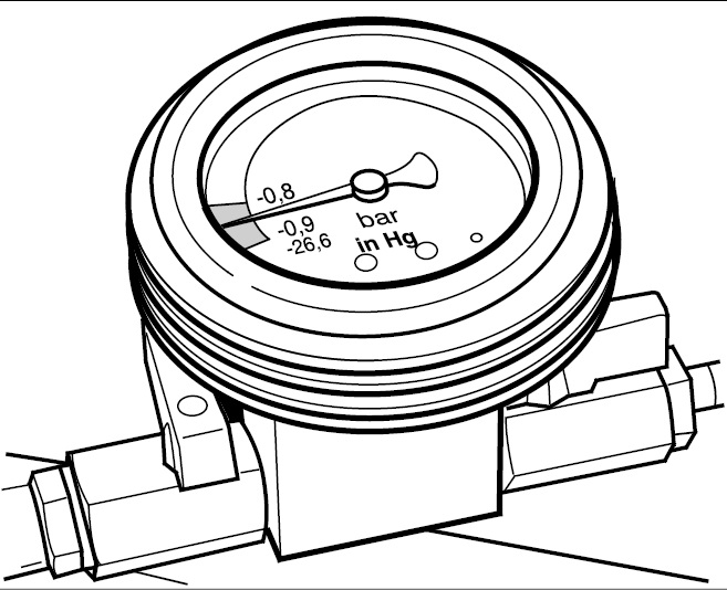 Вакуум является достаточным, когда стрелка манометра находится в зеленом диапазоне шкалы.