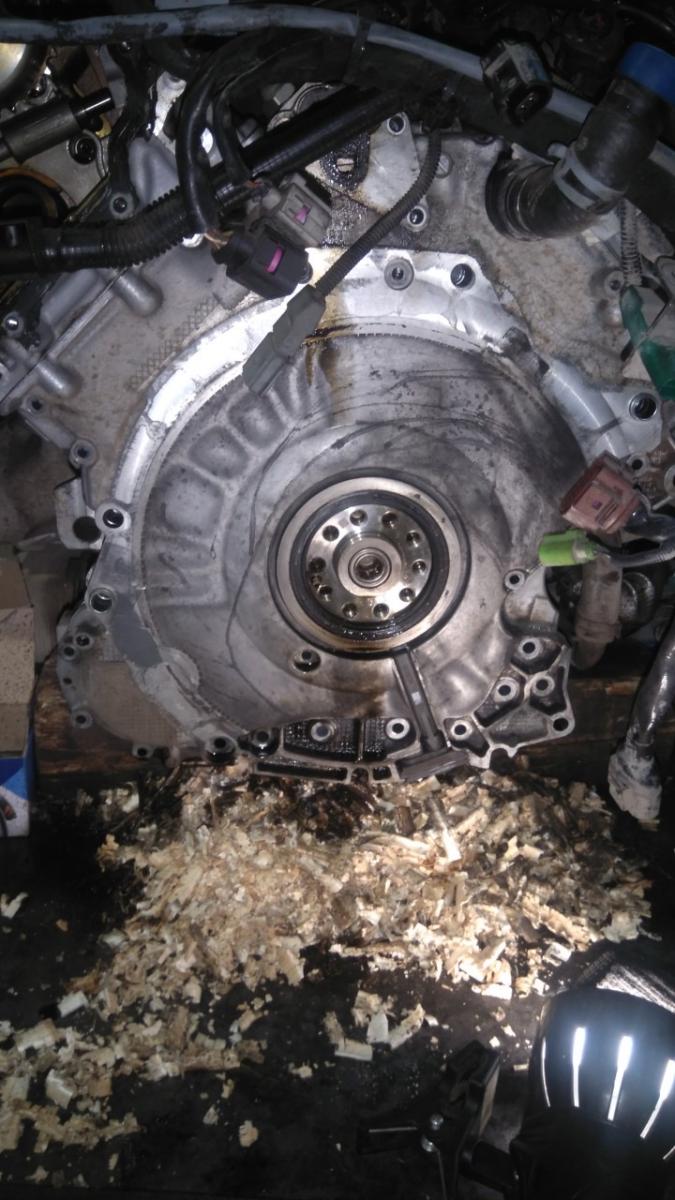 А вот когда меняли цепь ГРМ, снимали АКПП с электромашиной. Есть немного фото.