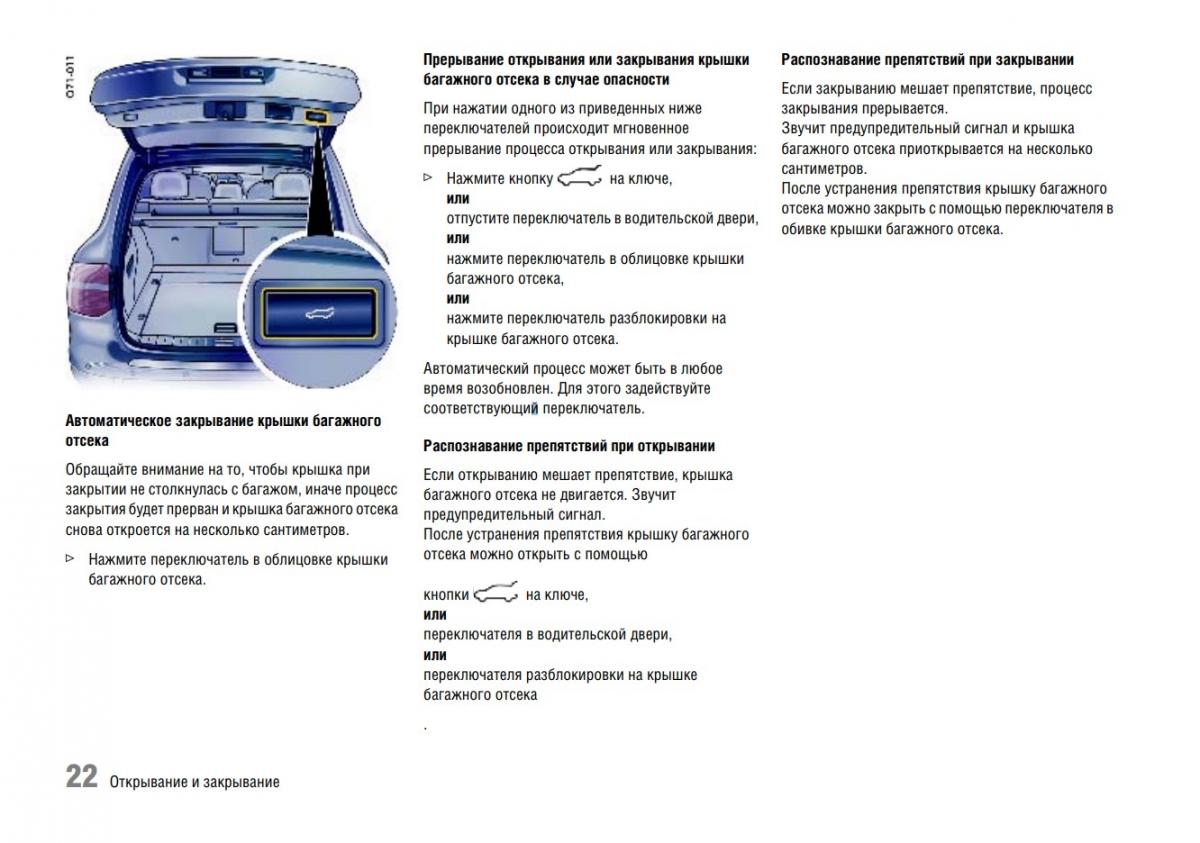 При задействовании блока управления задней