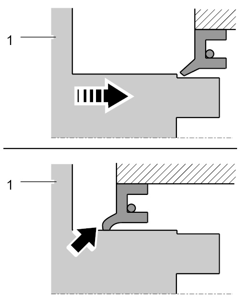 гидротрансформатора -1- уплотнительная кромка сальника из-за выступа на гидротрансформаторе может -1- вывернуться.