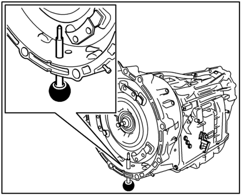 4. Гидротрансформатор установлен в правильном монтажном положении, если возможно установить специальный инструмент стопорные штифты 95950 через отверстие в картере