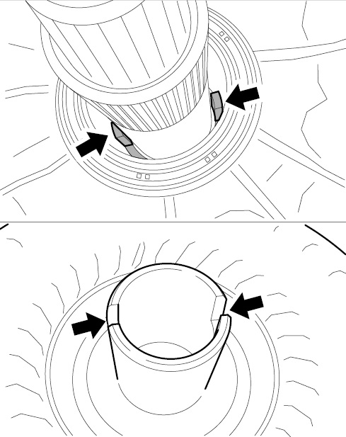 гидротрансформатора совпадали с канавками захвата -стрелки- .