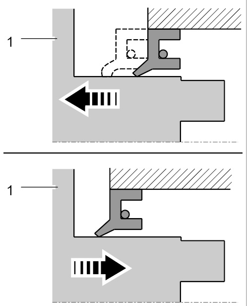 6. Гидротрансформатор -1- выдвинуть примерно на 5 мм. Благодаря этому уплотнительное кольцо вала снова встанет в правильное монтажное положение.