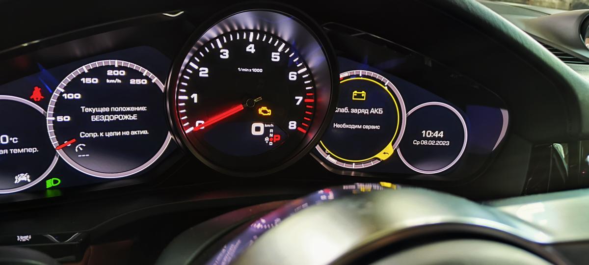 При рекламации клиента в связи с разряженной АКБ и желтым предупредительным сообщением “Слаб. заряд АКБ_Необходим сервис” (Желтое предупредительноесообщение: Слаб. зарядАКБ _Необходим сервис) на комбинации приборов необходимо учесть следующие моменты перед выполнением работ: