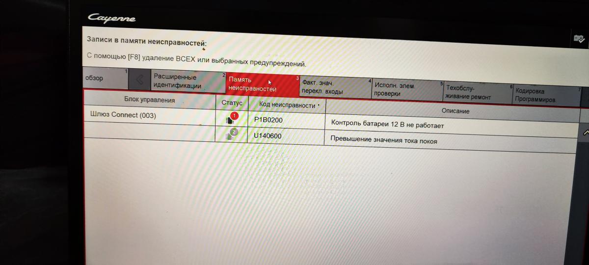 Если в отдельных блоках управления все еще имеются записи в памяти неисправностей, необходимо ненадолго запустить и снова заглушить двигатель. По истечении времени ожидания, которое составляет прибл. 10 секунд, снова включить зажигание и восстановить соединение между тестером PIWIS и автомобилем. Затем по отдельности повторно считать и очистить память неисправностей соответствующих блоков управления.