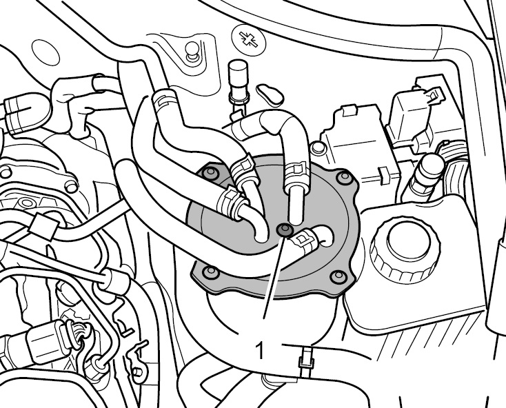 1 - Обратный топливопровод (от насоса высокого давления, синяя маркировка и маркировка RF на верхней части топливного фильтра)