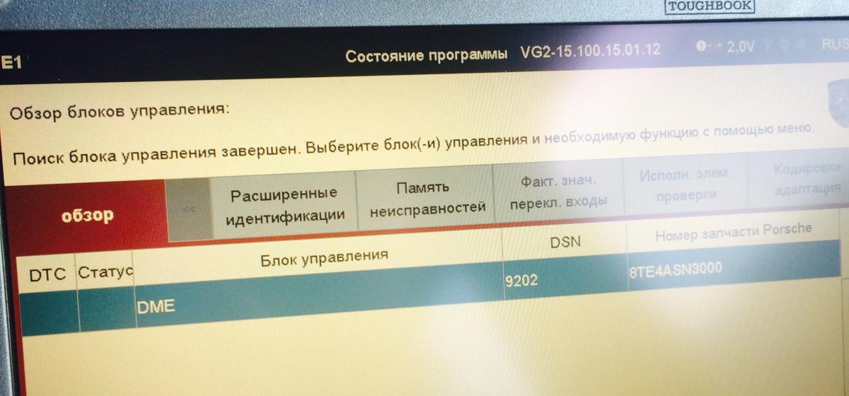 Сегодня опять делали диагностику. Изначально когда подключаешь сканер выкидывает ошибку DME 9202 номер запчасти порше 8TE4ASN3000