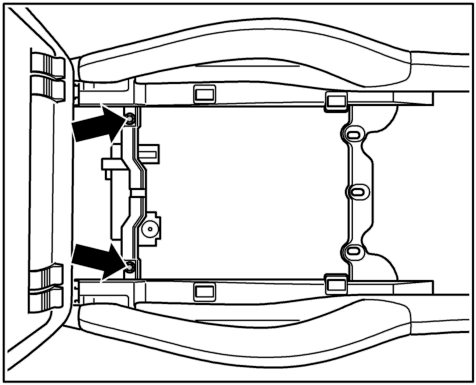 18. Вставить накладку центральной консоли спереди и откинуть ее назад. Ввернуть два винта -стрелки справа- .