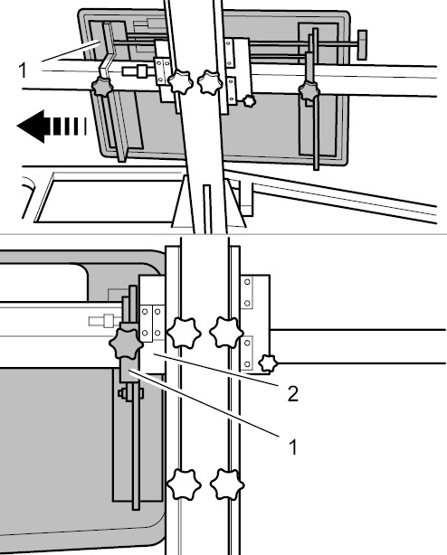 3. Выровнять задние чувствительные элементы на задней оси по уровням и затянуть с помощью винтов-барашков держателей измерительных приборов.