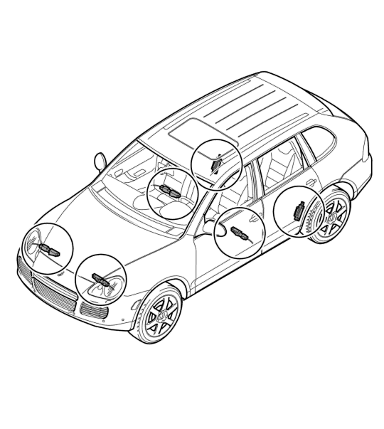На Cayenne установлено 6 датчиков подушек безопасности.