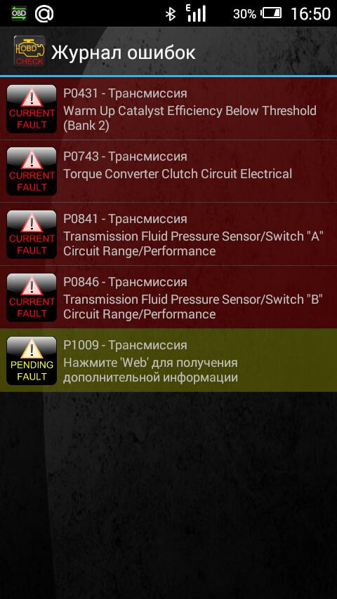 единственная ошибка P0743 (повреждение электрической цепи муфты сцепления).