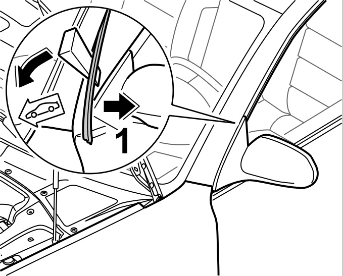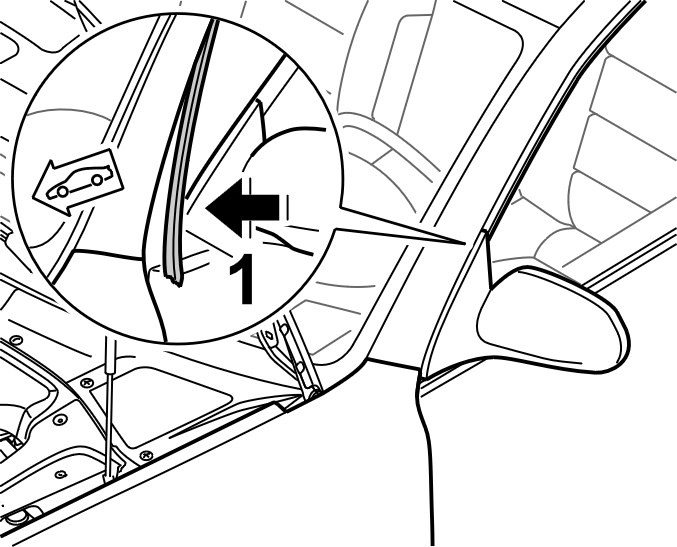 2. Отсоединить декоративную планку крыши -1- в зоне стойки А -стрелки- .