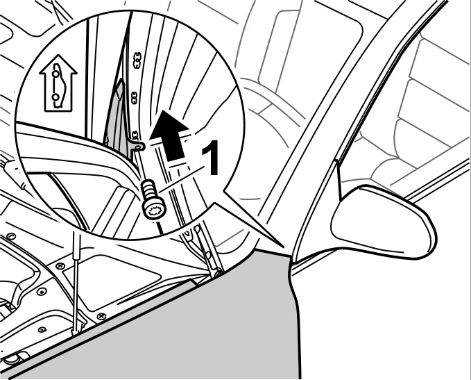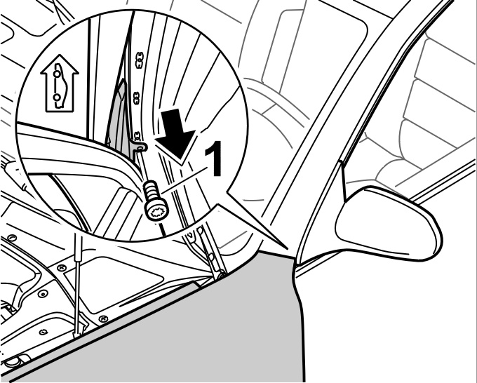 3. Вывернуть крепежный винт -1- на стойке А -стрелка- .