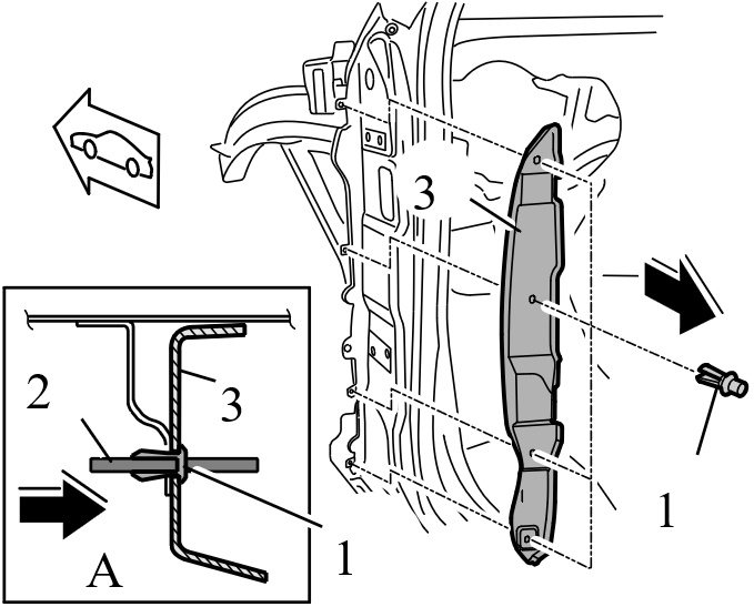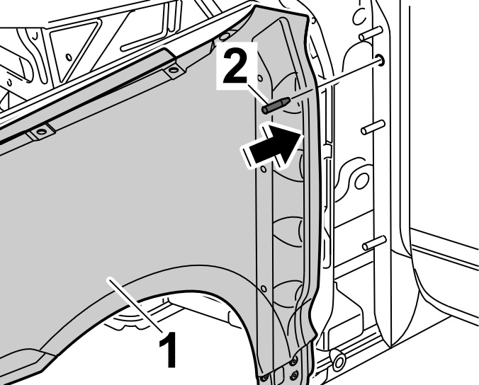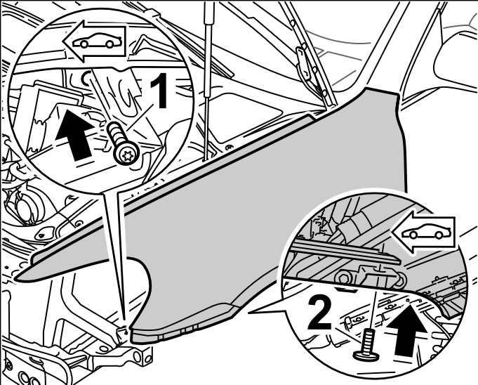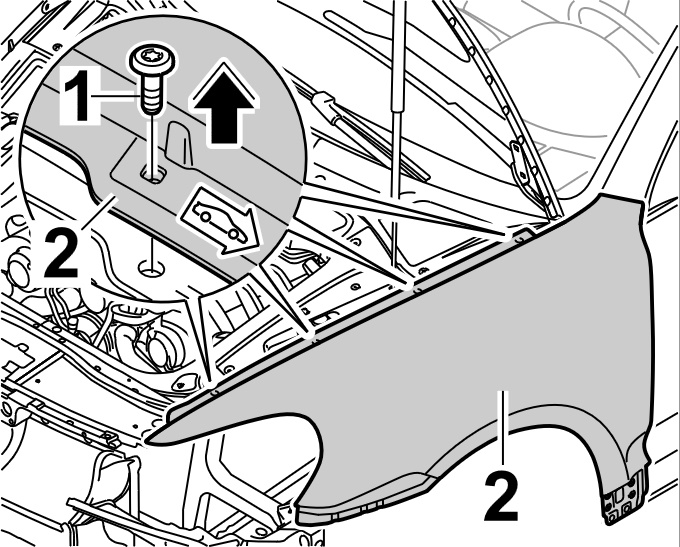 Из-за контура крыла крепежный язычок для демонтажа крыла должен быть деформирован. Если крыло после снятия будет установлено повторно, то при снятии нужно нагреть краску в зоне крепежного язычка с помощью фена.