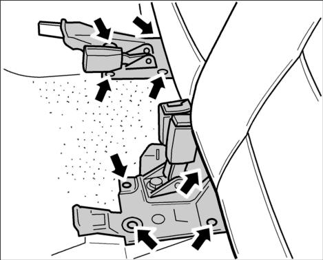 4. Затянуть крепежные пластины замка ремня безопасности. Для этого затянуть их соответствующими новыми крепежными винтами.