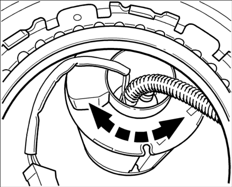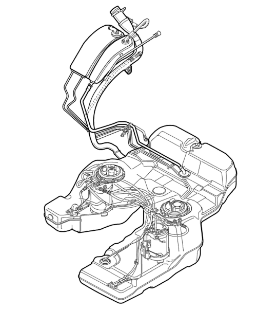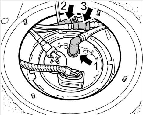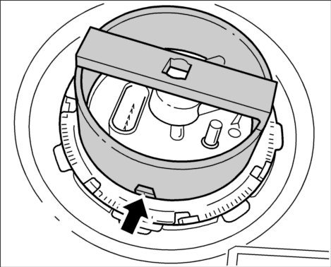 4. Повернуть насос примерно на 90° влево, пока он не выйдет из паза на днище топливного бака → Проворачивание топливного насоса . Извлечь топливный насос из топливного бака.