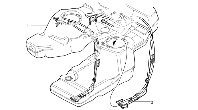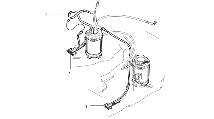 1. Снять электрические разъемы и разъемы топливопроводов с левого модуля подключения -2- . Затем снять модуль подключения (модуль фильтра).