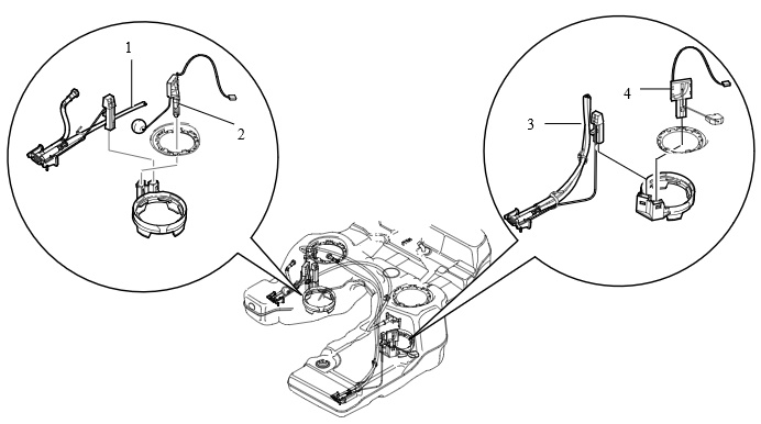 4 - Фиксация лев. датчика уровня топлива в зажиме дна топливного бака