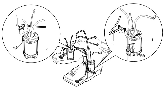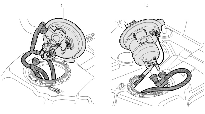 Для снятия левого топливного насоса следует отсоединить оба модуля подключения.