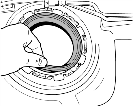1. Закрыть топливный бак. Для этого установить металлическое кольцо и затянуть ключом . → Крышка → Момент затяжки: 140 Nm