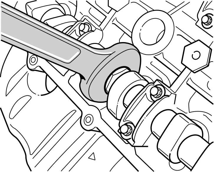 4. Провернуть все четыре распределительных вала таким образом, чтобы все коды матриц данных на установочных поверхностях были направлены вверх примерно одновременно (таким образом распределительные валы оказывают минимальное давление на толкатели клапанов). Распределительные валы проворачиваются за свои шестигранники с помощью подходящего рожкового ключа. Для установки распределительных валов соблюдать то же правило.