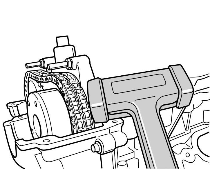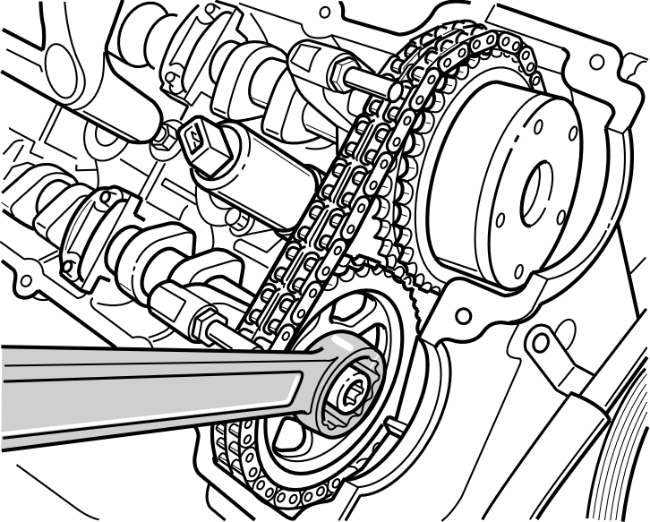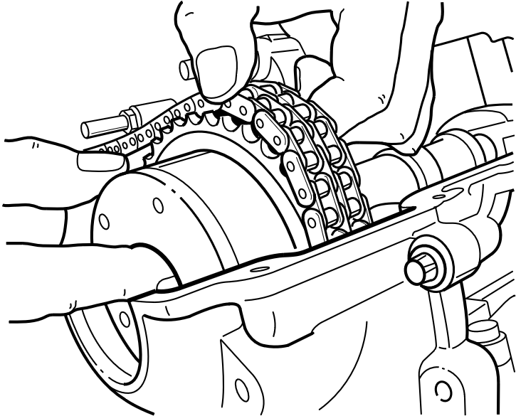 Запрещается проворачивать коленчатый вал в направлении, противоположном движению хода, или при демонтированном натяжителе цепи.