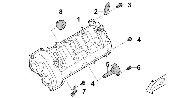 1 - Клапанная крышка ряда цилиндров 5-8 (выровнять по модулям зажигания)