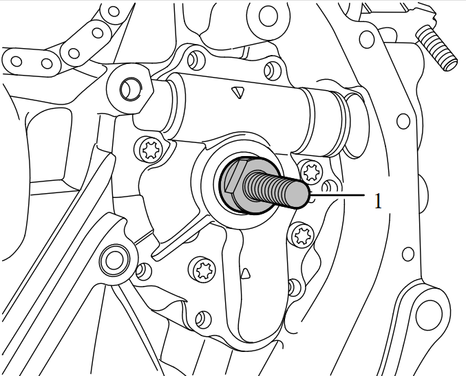 2. Вкрутить резьбовой палец -1- в вал масляного насоса.