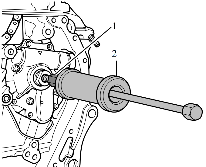 3. Установить спецприспособление -2- и осторожно выбить масляный насос. Ударный инструмент Резьбовой элемент
