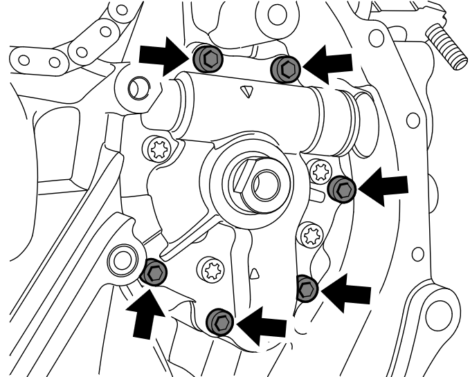 1. Выкрутить крепежные болты масляного насоса -стрелки- .